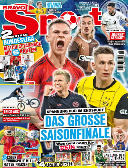 Das ePaper der BRAVO Sport ist das digitale Sportmagazin für junge Sportbegeisterte, die alle 2 Wochen das Neueste rund um Fußball, Fun- und Actionsport, Formel 1 und natürlich US-Sports wie Basketball oder Football wissen wollen.